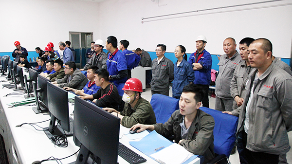 4萬機(jī)組一次并網(wǎng)成功后,集團(tuán)總工程師李成玉(右三)、項(xiàng)目建設(shè)部長胡林桂(右一)中鑫熱電總經(jīng)理韋毅民(右二)和副總經(jīng)理李樹彬(右四)同部分生產(chǎn)、技術(shù)管理骨干在中控室露出歡快的笑容!